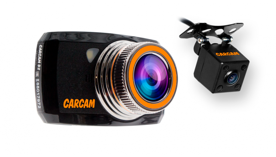 CARCAM D2 – автомобильный Full HD видеорегистратор с широкоугольным объективом и дополнительной камерой заднего вида. Благодаря стеклянному объективу и современной матрице, устройство ведет качественную съемку в формате Full HD при разрешении 1920x1080p. Встроенный G-сенсор, позволяет автоматически защитить видеофайл от перезаписи в случае резкого торможения или ДТП.