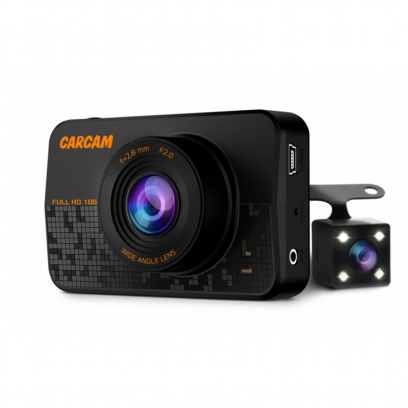 CARCAM D1 – автомобильный Full HD видеорегистратор с дополнительной камерой. Основная камера устройства обладает углом обзора 140° и ведёт качественную съемку в разрешении 1920x1080p. Дополнительная камера обладает углом обзора 90° и может использоваться для видеофиксации обстановки позади автомобиля или в его салоне, а также для безопасной парковки. Видеорегистратор обладает компактными габаритами, благодаря чему он не занимает много места на лобовом стекле и не мешает обзору.
