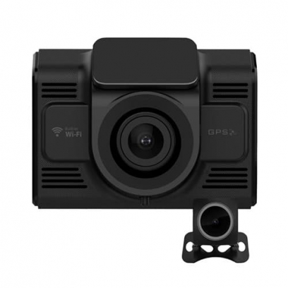 Обзор широкого угла передней камеры выдает детальную картинку при движении и перестроении по полосам. Фиксация скорости отображается на дисплее. Через телефон возможность управления видеозаписью - копирование, удаление...