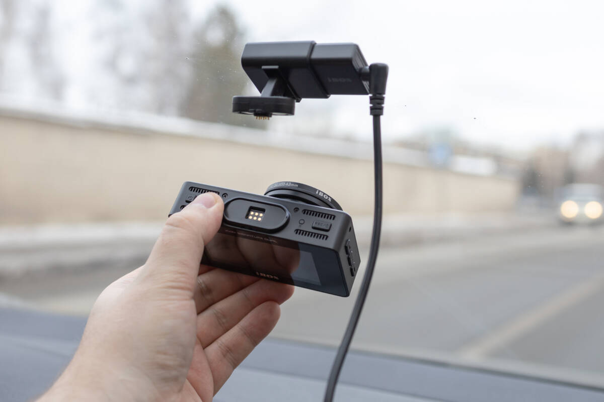 Компактный гибрид iBOX iCON Signature Dual оснащен удобным магнитным подвесом, который крепится на лобовое стекло с помощью 3M-скотча. Кабель питания подключается непосредственно к кронштейну, что значительно упрощает установку и снятие прибора.